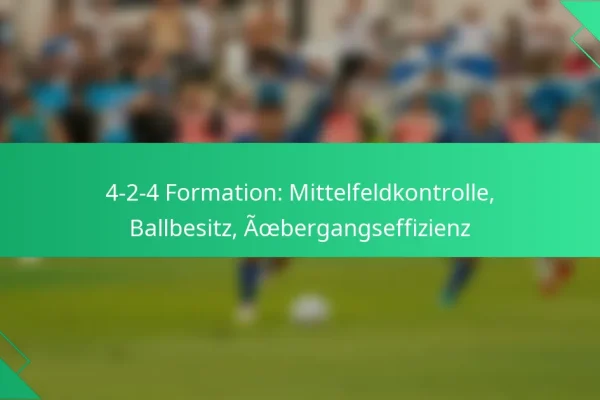 Die 4-2-4-Formation ist ein dynamisches taktisches Setup im Fussball, das eine solide defensive Struktur mit einer aggressiven Angriffsstrategie kombiniert. Durch die Positionierung von vier Stürmern und zwei zentralen Mittelfeldspielern verbessert diese Formation die Kontrolle im Mittelfeld, fördert den Ballbesitz und sorgt für effiziente Übergänge, sodass Teams den Ballbesitz maximieren und Tormöglichkeiten schaffen können. Key sections…