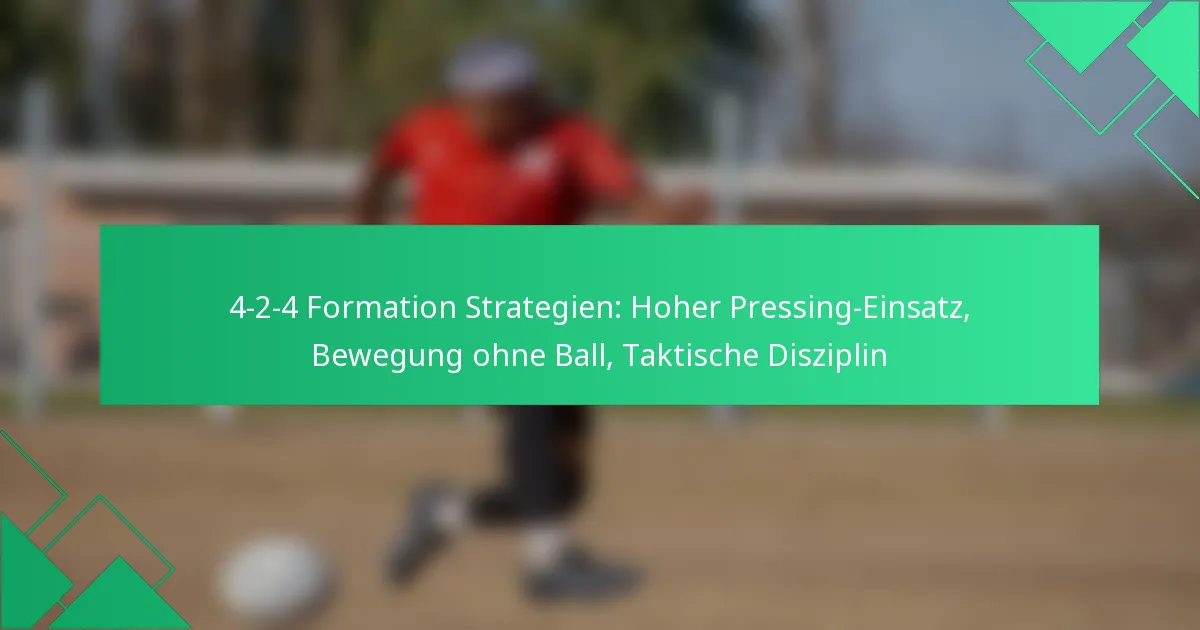 Gegenpressing ist in der 4-2-4-Formation entscheidend, um den Ballbesitz schnell zurückzugewinnen, nachdem der Ball verloren wurde. Diese Strategie erfordert, dass die Spieler sofort Druck auf die Gegner ausüben, um deren Fähigkeit zu stören, einen Konterangriff einzuleiten. Effektives Gegenpressing beruht darauf, dass die Mittelfeldspieler und Stürmer gemeinsam arbeiten, um Passwege zu schließen und Fehler zu erzwingen.